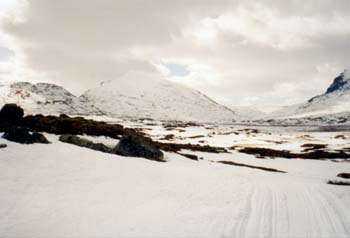 Einen Tag abfahrenDie letzte Etappe auf Skiern. Nach einem kurzen Anstieg geht es nun permanent bergab. Bei meist leichtem Gefälle kann man die Bretter laufen lassen. Unvermittelt ist dann allerdings Schluss mit Lustig. Das Gras kommt durch und wir müssen laufen. Endlich an der Fjällstation angekommen fängt es an zu schneien. Man erklärt uns an der Rezeption, dass der Weg über den See nicht mehr befahrbar ist. Und am Ufer entlang sei auch nicht zu empfehlen. Die Bäche von den Bergen tragen mittlerweile viel Schmelzwasser, kein Durchkommen. Letzter Ausweg: Der Hubschrauber. Zum Glück bietet er gerade fünf Personen Platz. Wir bestellen ihn für den nächsten Morgen. Am Abend geht es in die Sauna. Ein paar Dosen Bier aus dem Laden runden den Tag ab. |