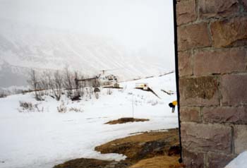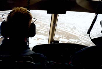 Der Hubschrauber kommtPünktlich zur vereinbarten Zeit kommt der Hubschrauber. Schnell das Gepäck geschnappt und ab zum Landeplatz. Der Rotor kommt nicht zum stehen. Der Pilot deutet uns an einzusteigen. Tür zu und schon heben wir ab. |