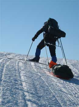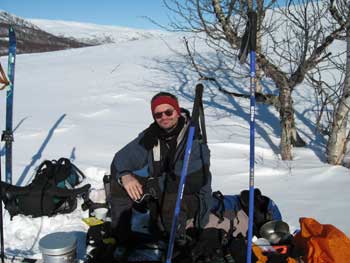 Und mittags ein SüppchenAm Nachmittag ist es so sonnig und windstill, dass man bequem eine längere Mittagspause einschließlich warmem Essen machen kann. Gut gesättigt und wieder bei Kräften gehen wir das letzte Drittel der Strecke an.