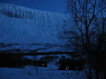 Sternenklar und vollmondhellAm Abned hat die Sonne alle Wolken aufgelöst und es wird kalt aber sehr klar. Das Vollmondlicht wird vom Schnee reflektiert und auch um zehn Uhr abends ist es noch recht hell. Eine Ruhe legt sich über die Landschaft, einfach Wahnsinn! |
