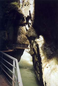 Eng, laut, hoch und feucht.Natürlich ist die Passage nicht kostenlos. Wir berappen die Franken und los geht's. Auf was ich mich hier ingelassen habe werke ich bald. Meine Höhenangst kommt in der Enge und dem schmalen Holzsteg, hoch über dem tosenden Wasser, voll zur Geltung. Ein Vergnügen? Geht so... Auf dem Rückweg nehmen wir dann den Weg über den Berg. Eine Mountainbike Strecke führt hier entlang. Aus dem gemütlichen Spaziergang ist am Ende doch noch eine ausgiebige Wanderung geworden. Zu allem Überfluß hat sich auch noch eine Zecke in meinem Bein verbissen. Die Zeltplatzchefin beruhigt uns allerdings in bezug auf Hirnhautentzündung. |
