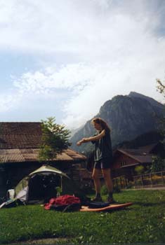 RuhetagDiesen haben wir uns auch redlich verdient. Zur Belohnung scheint sich Petrus auch noch entschlossen zu haben, uns gutes Wetter zu bescheren. Es ist warm und sonnig. So den ganzen Tag auf der faulen Haut zu liegen, ist uns dann doch zu wenig. Ein kleiner Spaziergang durch die Aareschlucht solls denn werden. Der Fluß, hier eher noch ein Bach, fließt direkt hinter unserem Zelt. Wir folgen ihm einfach auf dem Damm, und erreichen nach einer halben Stunde den Eingang zur Schlucht. |