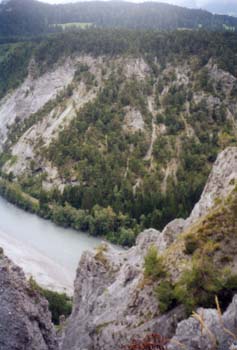 Endlos rauf und runterNach der Hälfte der Strecke biegen wir in das Hinterrheintal ein, und kommen auf einer größeren Straße zügig voran. Wir wollen noch bis zum Fuße des Albulapasses fahren. Nachdem der Tag mit viel Sonne begonnen hatte, werden wir am Ende doch noch vom Regen überrascht. Auf dem Campingplatz angekommen läßt uns ein Knistern über uns aufhorchen. Die Hochspannungsleitung über uns! Durch die Feuchtigkeit hört man die Elektrizität... Am nächsten Tag regnet es immer noch und wir legen noch einen Ruhetag ein. Immerhin können wir die eindrucksvollen Eisenbahnwindungen besichtigen, die sich am Eingang des Albulatals den Hang hinaufwinden. |