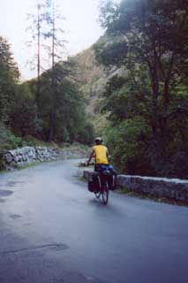 Die AbfahrtWieder unterhalb der Baumgrenze verengt sich das Tal. Starker Gegenwind lässt bei dem immer flacher werdenden Gefälle die zunächst rasante Abfahrt langsamer werden. Es wird eine ziemlich lange Fahrt, und wir kommen in der Dämmerung in St.-Sauveur-sur-Tinée an. |