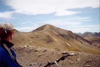 Den Pass im BlickDie Königsetappe unserer diesjährigen Tour. Mit 2802 müN ist der Bonette der höchste, öffentlich befahrbare Pass der Alpen. Die alte Armeestraße geht eher auf einen Gipfel als auf einen Pass. Nach etwa 1400 Höhenmetern ist das Ziel endlich zu sehen. Um diesen Schuttkegel herum müssen wir noch. |