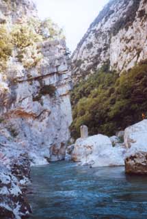 Ehemaliger Steg von MayresteHier gab es mal einen Übergang. Diese wurde vor einigen Jahren durch ein Hochwasser hinweggefegt. Heute kommen uns nur einige Canyoning-Touristen auf dem Verdon johlend entgegen. |
