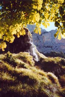 Der Wasserfall bei St. MaurinHier beginnt der Abstieg zum Grund der Schlucht. Etwa 400 Höhenmeter geht es hinab. |