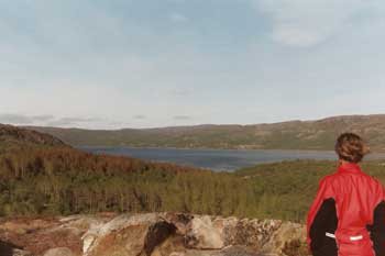 Die norwegische GrenzeAm Morgen müssen wir uns wieder vor den Ameisen in Acht nehmen. Diese haben eine breite Straße direkt am Strand, und attackieren heftig, wenn man im Wege steht. Nach dem Frühstück geht es, bei sonnigem und warmem Wetter, los. Heute abend wollen wir endlich das Polarmeer sehen. Etwas über 100 Kilometer liegen vor uns. Bis zur norwegischen Grenze in rund 70 Kilometern ist auf der Karte kein Ort mehr eingezeichnet. Kommt jetzt endlich die große Einöde? Die Straße führt uns, wie gehabt, auf leicht welligem und bewaldetem Gelände gen Norden. Leider kommt auch der Wind aus dieser Richtung. Die Kilometer ziehen sich. Und das Radeln fühlt sich an, als ob man ständig zu wenig Luft auf dem Hinterrad hätte. Anstrengend! |