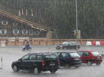 ...und schließlich am Berg!Die Weiterfahrt am nächsten Mittag gestaltet sich unproblematisch. Am frühen Nachmittag erreichen wir Berchtesgaden. Eine Pizza im Freien können wir gerade noch genießen, als plötzlich ein heftiger Regenschauer über uns hereinbricht.