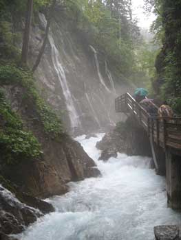 Es regnet noch leicht. Trotzdem nehmen wir den Weg durch die Wimbachklamm. Dort wäre es vermutlich auch ohne Regen von oben nass! |