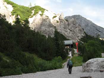 ...zur WimbachgrieshütteNach guten drei Stunden erreichen wir die Wimbachgrieshütte. Es ist ziemlich voll, wir ergattern trotzdem noch ein Viererzimmer und sind erst mal zufrieden.