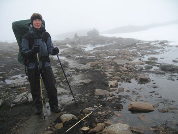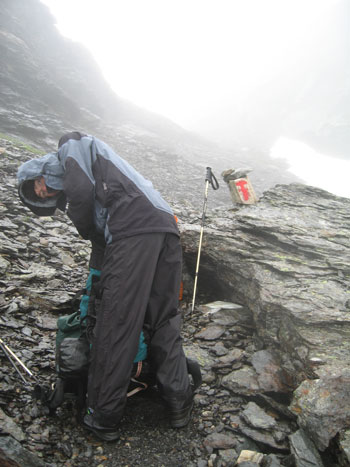 UngemütlichIrgendwann haben wir uns an eine halbwegs flache Stelle gestellt. Das Zelt flattert ziemlich im Wind. Und der ist nicht von schlechten Eltern. Trotzdem haben wir ganz gut geschlafen. Am Morgen regnet es immer noch. Wir warten. Irgendwann am Nachmittag fällt uns die Decke auf den Kopf. Wir brechen auf. Das nasse Zelt wird eingepackt und wiegt natürlich mehr als sonst. Sei's drum. Am Ende der Etappe winkt eine unbewirtschaftete Hütte mit warmem Ofen und trockener Stube. |