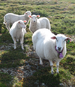 Neugierige Besucher am MorgenSchafe, die uns schon die ganze Zeit begegnet sind, kommen am Morgen neugierig an und beschnuppern begeistert (?) unsere Wanderschuhe. Nochmal Müsli mit Milchpulver und warmem Wasser in der Sonne. Es wird für einige Tage das letzte Mal sein. |