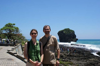 Nixons Kopf?Nach dem Strandabenteuer geht es weiter mit dem Auto Richtung Südspitze. Eine Attraktion auf dem Weg ist ein Fels im Meer. Nicht weiter aufregend, wenn nicht jemand den Vergleich mit ex. US Präsident Nixon gemacht hätte. So ist der Brocken zu einem bekannten Fotomotiv geworden. Auch wir dürfen uns das nicht entgehen lassen. Uns fällt auf, dass der Strand hier überall durch Korallen gebildet wird. Sandstrände sind sehr rar. Vermutlich ist Kenting deshalb so begehrt. Der einizge Sandstrand weit und breit. |