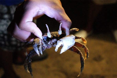 Krabbenjagd in der NachtZum Sonnenuntergang erreichen wir HaiKu. Ein sehr neues und teures Restaurant wartet auf uns. Aber es lohnt sich. Als ob wir noch nicht genug erlebt hätten, gibt es eine Nachtwanderung am Strand und Krabbenjagd. Eiegntlich eher was für Kinder, die auch zahlreich dabei sind, aber dennoch ganz amüsant.