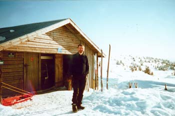 Zu TalDie Abfahrt macht zunächst richtig Spaß. Durch ungespurtes, noch dünn bebaumtes Gebiet kann man die Skier laufen lassen. Im dichten Wald wird es dann schwierig. Ich muss zum ersten Mal abschnallen und gehe Teilstücke zu Fuß den Berg hinab. Auf halber Strecke mach wir Rast. Der Schnee wird weniger und man muss zunehmend den schneefreien Stellen ausweichen. Hier auf 400 m.ü.NN. ist es inzwischen zu warm und der Schnee schmilzt dahin. Wir überqueren bei Lillbäckstugan den Görälven. Zur Hütte sind es ab hier 360 Höhenmeter nach oben. Die Strecke zieht sich auf einer Scooterspur durch den Wald. Gegen sechs haben wir die Hütte erreicht. Das Feuerholz muss hier erst noch gesägt und gehackt werden; wärmt also dreimal! Später herrschen Saunatemperaturen und es macht Spaß, sich im Freien mit dem Schnee abzureiben. So kann man sich auch waschen... |