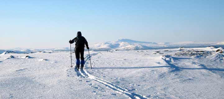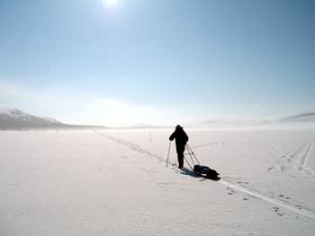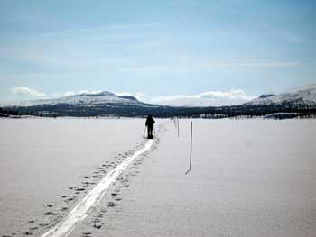 Neuschnee am MorgenIn der Nacht sind ein paar Zentimeter Neuschnee gefallen. Die Bäume ringsherum gepudert glitzern in der Morgensonne. Stellt man sich so einen Zauberwald vor? Die heutige Strecke von 17 Kilometern nach Storrödtjärn schreckt uns mittlerweile nicht mehr. Allein am Ende gibt es eine kleinere Höhendifferenz zu überwinden. Wir verabschieden uns von der deutschen Reisegruppe, für die in Rogen der letzte Tag der Reise anbricht. Wir folgen den Holländern. |
