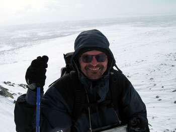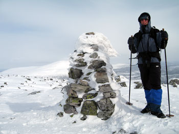 Das Wetter ist heute nicht so berauschend. Es schneit ein wenig und der Himmel ist bedeckt. Trotzdem, nur auf der Hütte sitzen, danach ist es uns heute auch nicht. Ganz in der Nähe befindet sich das Skedbrofjället mit dem Gipfel auf 1148 Metern. Genau richtig, um es einmal zu umwandern und den Gipfel zu erklimmen. |