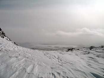 Den Abstieg treten wir ebenfalls zu Fuß an. Zu diffus ist das Licht und meine Bindung ist eingefroren. Erst weiter unten ist der Wind etwas schwächer und ich kann die Bindung mit warmer "Flüssigkeit" enteisen. Zurück auf der Hütte erwarten uns schon die ersten neu angereisten Gäste. Am Ende wird es doch wieder gut voll. |